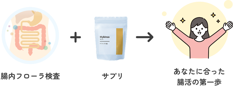 腸内フローラ検査「マイキンソー」では、検査の結果をもとに、あなたの腸内環境に合わせたサプリメントをレコメンドしています。